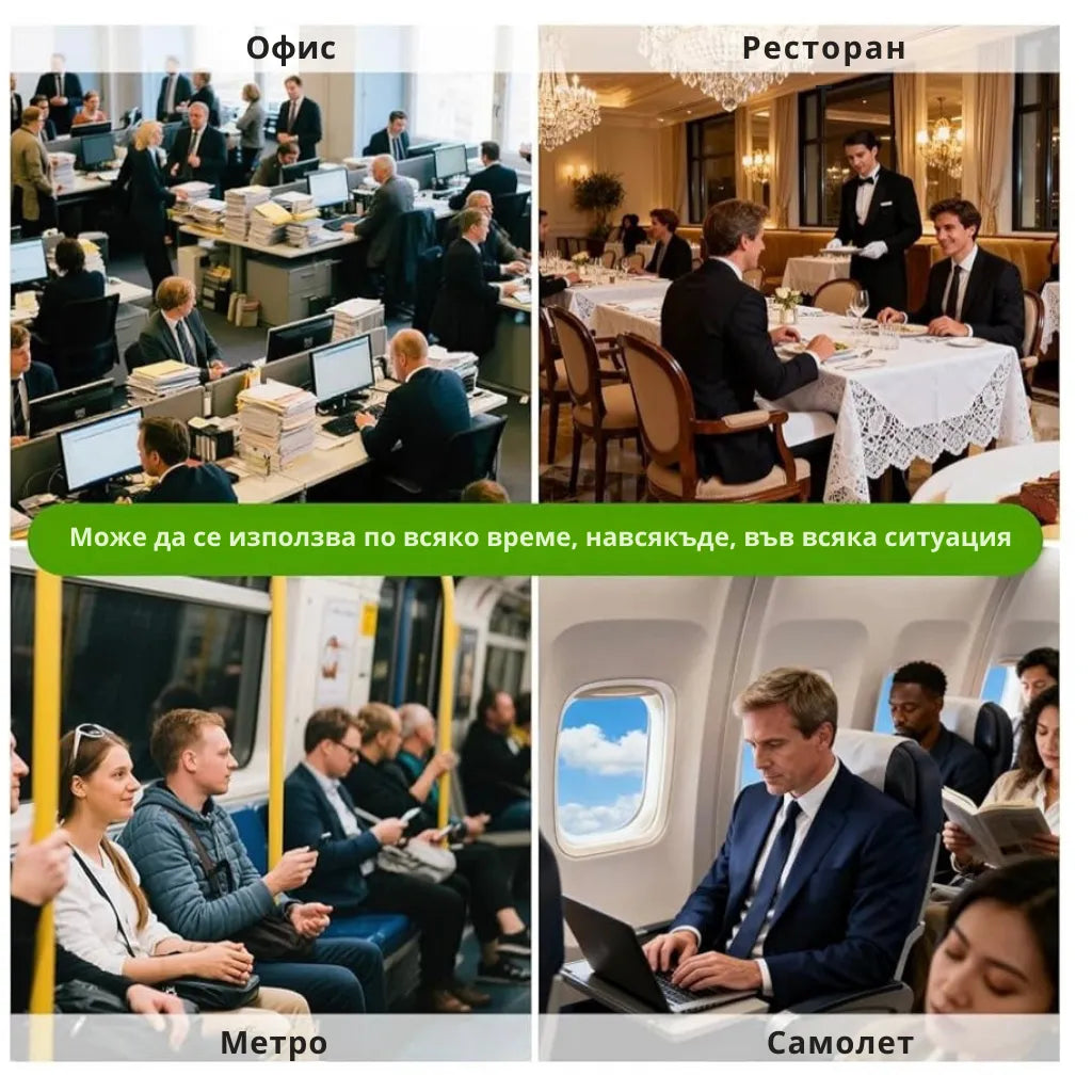 Разбира се! То е дискретно и елегантно, без дим, което го прави идеално за социални пространства, където пушенето или електронните цигари не са позволени. Може да се използва в самолети, ресторанти или на работа.