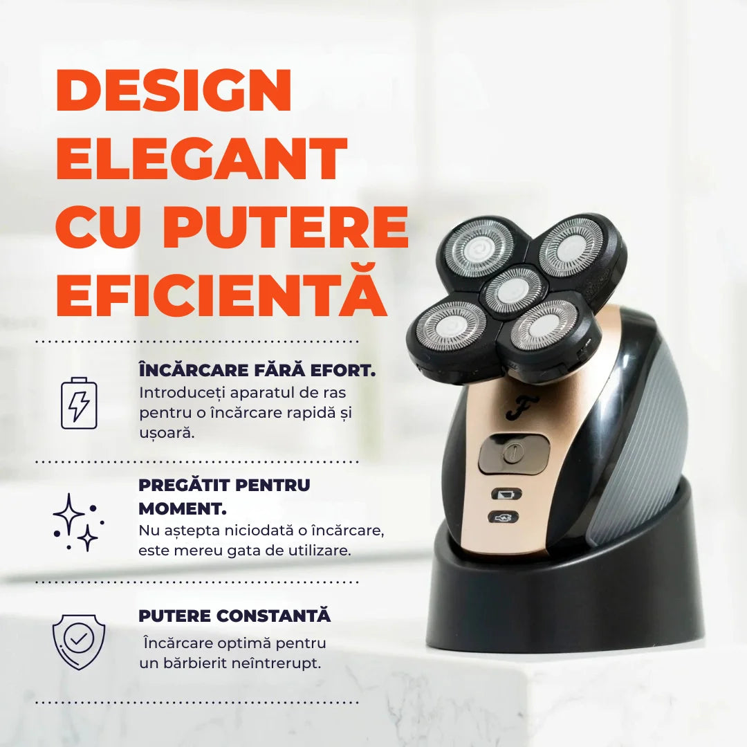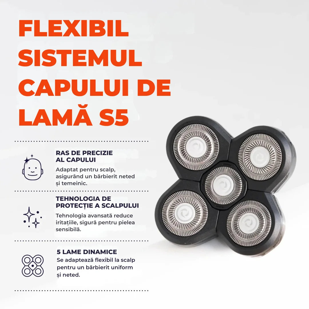 Proiectat pentru o prindere confortabilă în mână, permite un bărbierit ușor al capului cu control deplin.