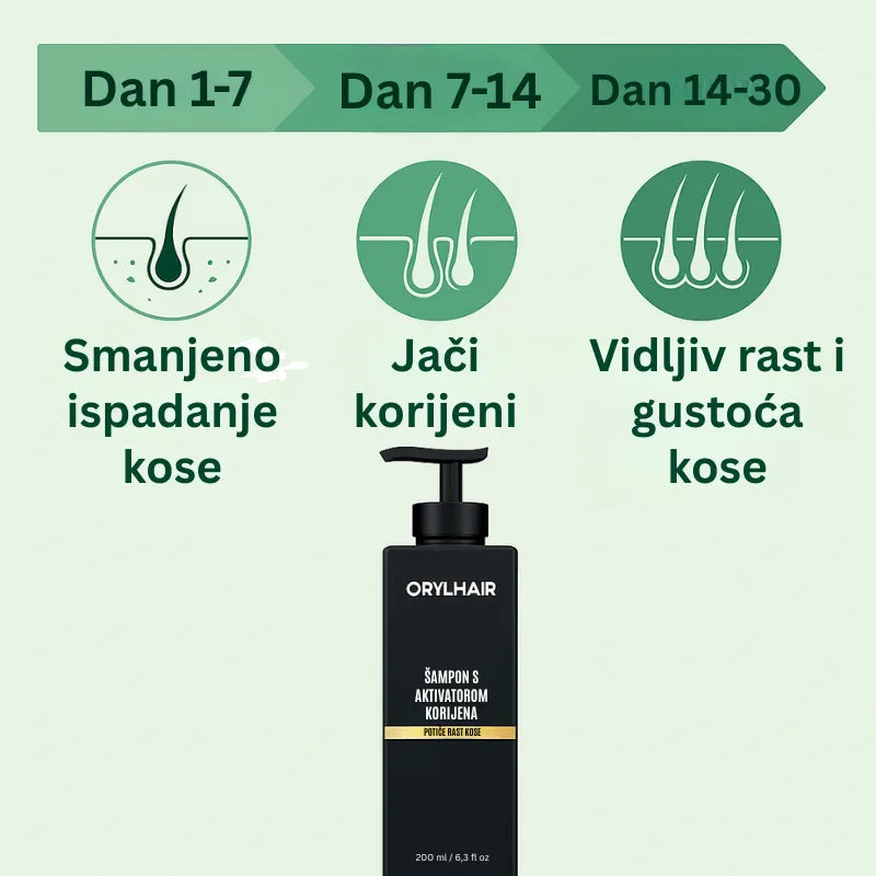 ORYLHAIR RootBoost: aktivirajući šampon osmišljen za osjetljive korijene, jednostavan za svakodnevnu upotrebu.