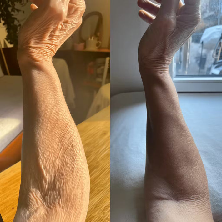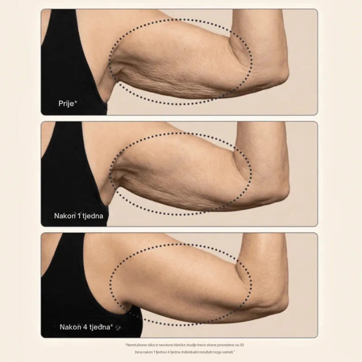 Većina krema za tijelo samo na nekoliko sati prikrije suhoću. Ne rješavaju tanku, krhku teksturu nalik papiru zbog koje ruke i vrat izgledaju i osjećaju se bez potpore.