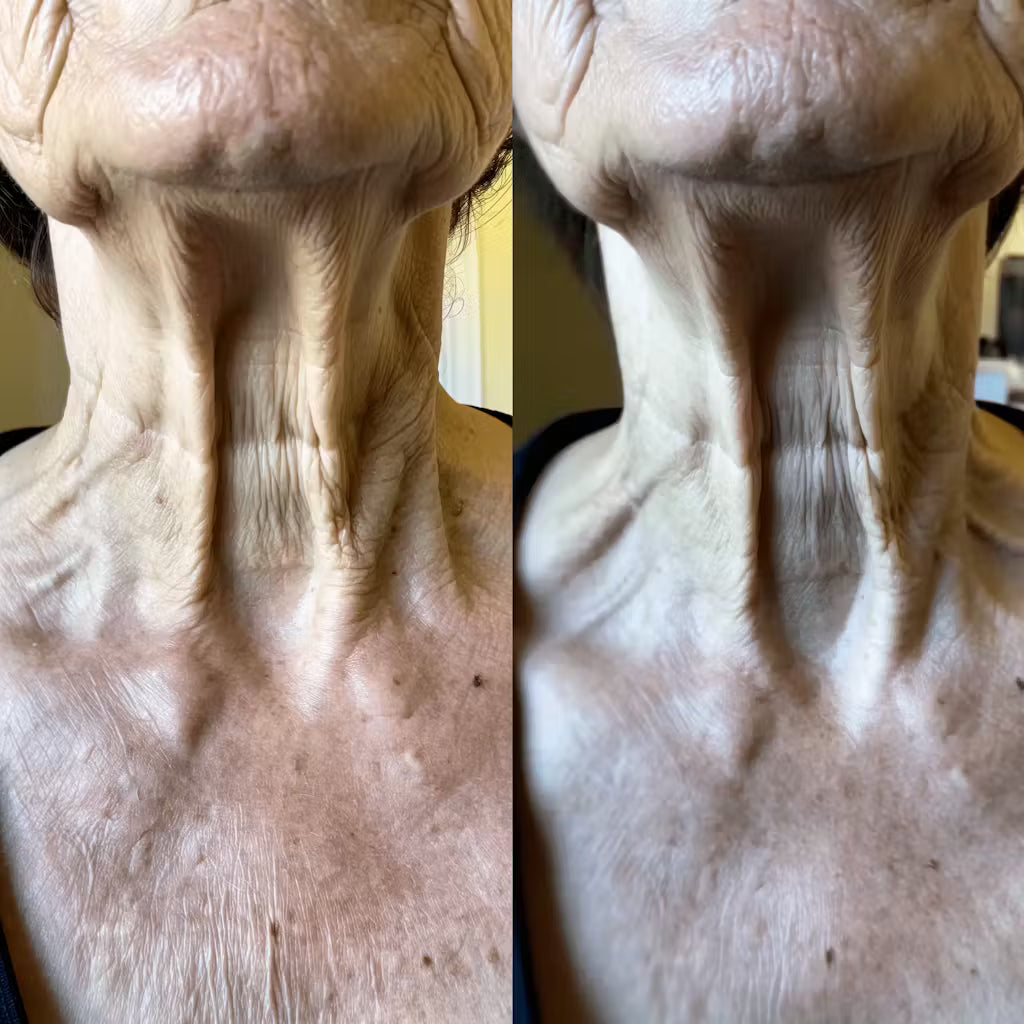 Prijavljen je vidljivo glađi izgled kože na rukama i vratu, osobito oko laktova i dekoltea.