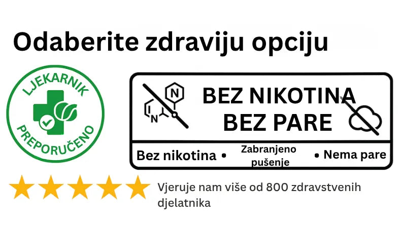 Nije samo nikotin problem. Ritual ruka-na-usta, oralna fiksacija, duboki dim i izdisaj stvaraju snažan krug navike. Flasteri ili žvakaće ne rješavaju taj krug, a većina vape uređaja zadržava nikotin u slici.